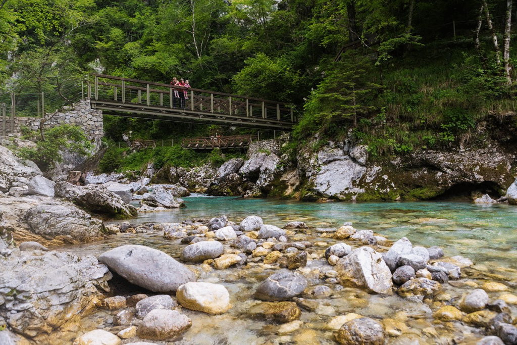 The main sights in Tolmin Gorges: LENGTH: 4 km (1,5 h walk) Easy circular trail Visitors can drive to the parking lot of the Tolmin gorges by car. The distance from Tolmin is 2 km. There is shuttle bus from Tolmin to Tolmin Gorges in July and August
